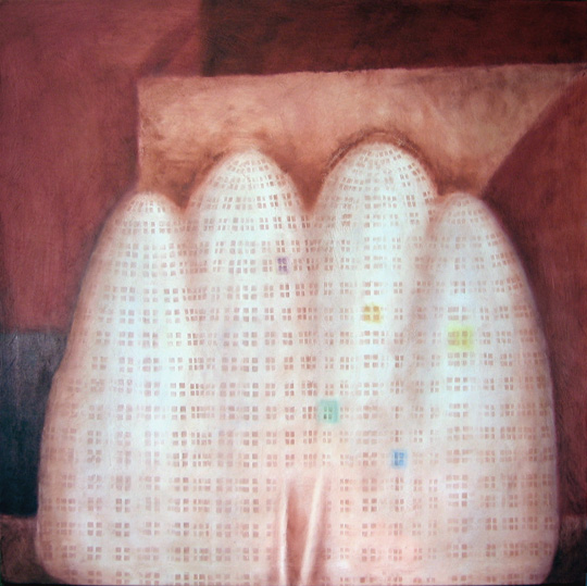 Inespressi Abissi esplora la dimensione psicologica e simbolica dell'esistenza. I temi del desiderio, della resistenza e della speranza emergono attraverso forme sospese tra architettura e corpo, materia e memoria. Il paesaggio urbano diventa metafora interiore: uno spazio mentale in cui convivono forza e fragilità. L'influenza di Carrà e De Chirico si ritrova nella sintesi formale e nel lirismo silenzioso, che interpreto in chiave contemporanea attraverso un uso monocromatico del colore e strutture biomorfe ispirate a oggetti della cultura materiale, come le nasse da pesca.